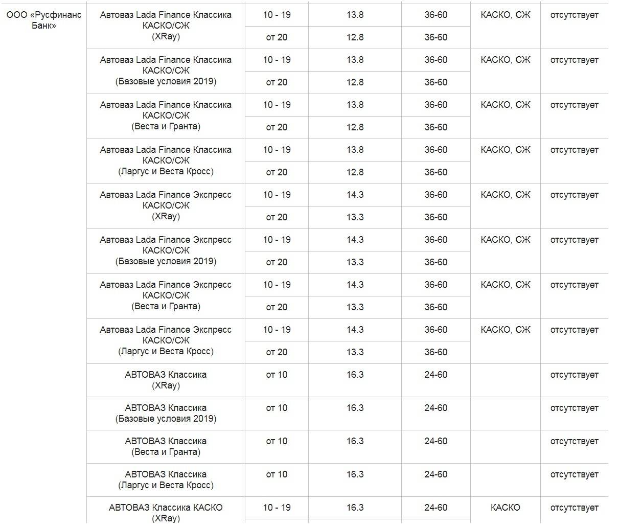 В блоке Лада Финанс в настоящее время работает 4 банка – ВТБ, Русфинанс, Совкомбанк и Сетелем Банк. Они немного отличаются требованиями к заемщикам. Колебания в процентных ставках между ними не более 1,5-2 процентов.