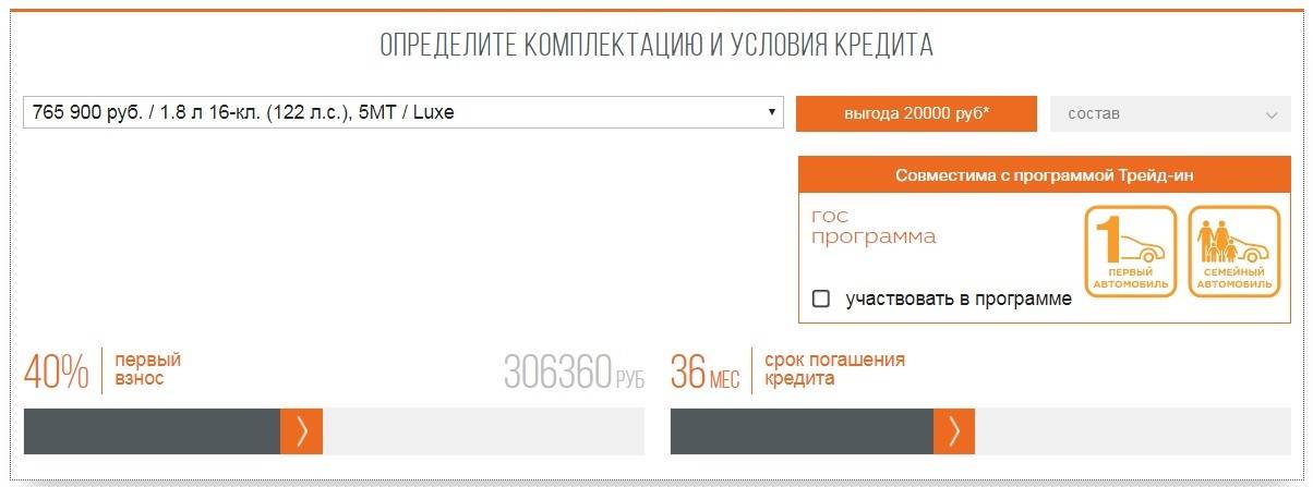 - Выбранная программа – наличие господдержки, утилизация или Трейд-Ин.