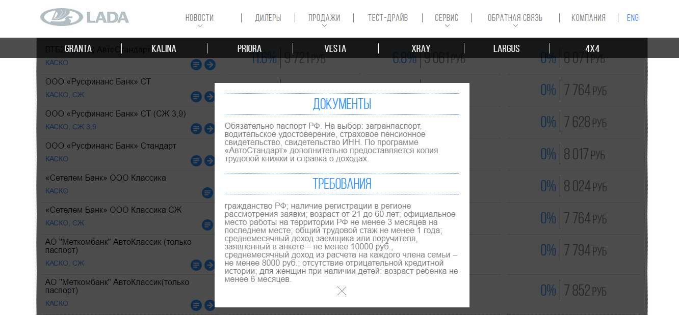 Пример требований банка при оформлении кредита на Лада Икс Рей.