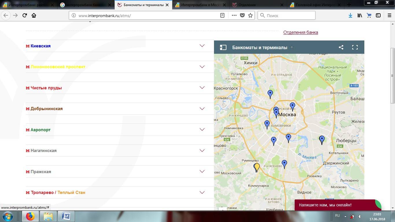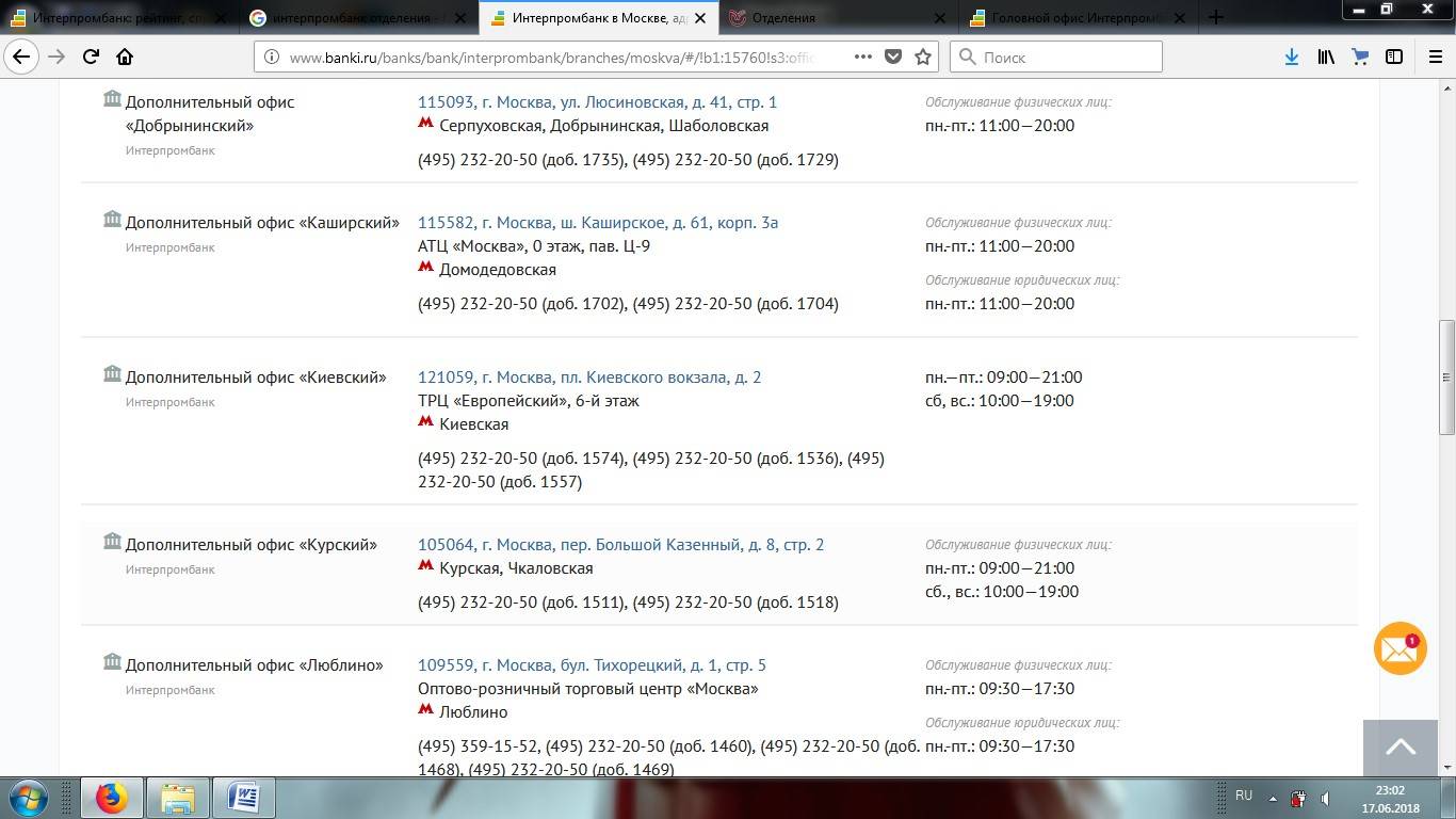Отделения и банкоматы Интерпромбанка в Москве