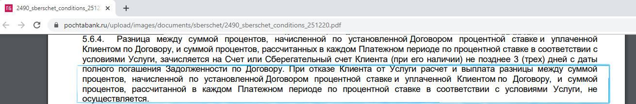 В этом есть главный недостаток – это свидетельствует о том, что Почта Банк не пересчитывает для своих клиентов проценты за пользование кредитом и не уменьшает срок погашения займа.