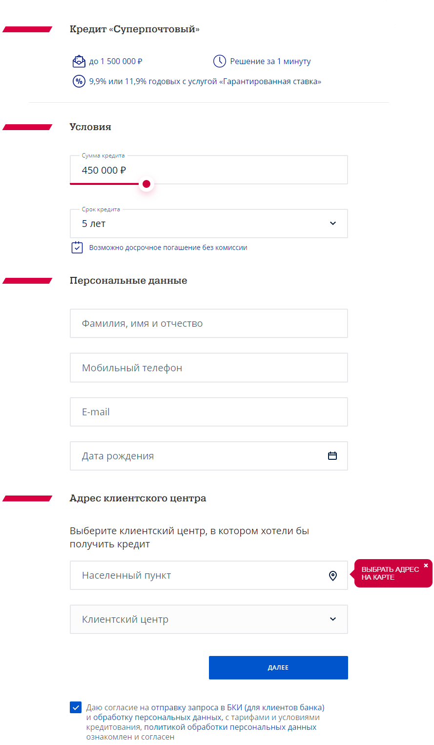 - Ознакомиться с параметрами кредита и требованиями к заемщику.