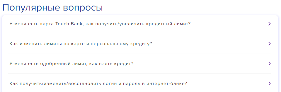 Особенности кредитки Тач Банка