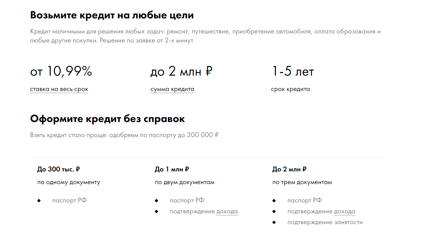 Если сумма кредита составляет до 300 000 рублей, для оформления понадобится только российский паспорт.