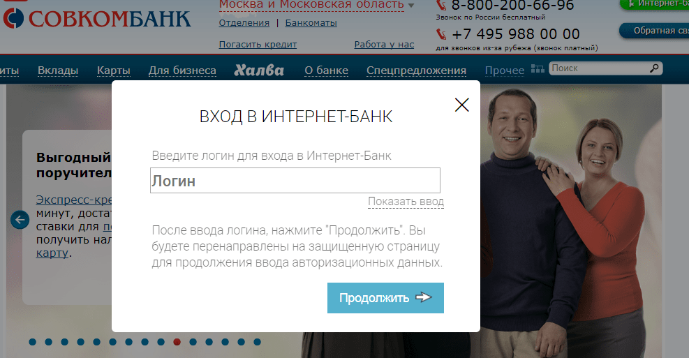 - Открыть главную страницу официального сайта sovkombank.ru.