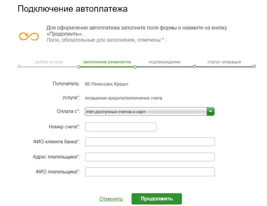 Чтобы платеж по кредиту в «Ренессанс Кредит» всегда поступал вовремя, можно настроить его автоматическое выполнение. Для этого следует: