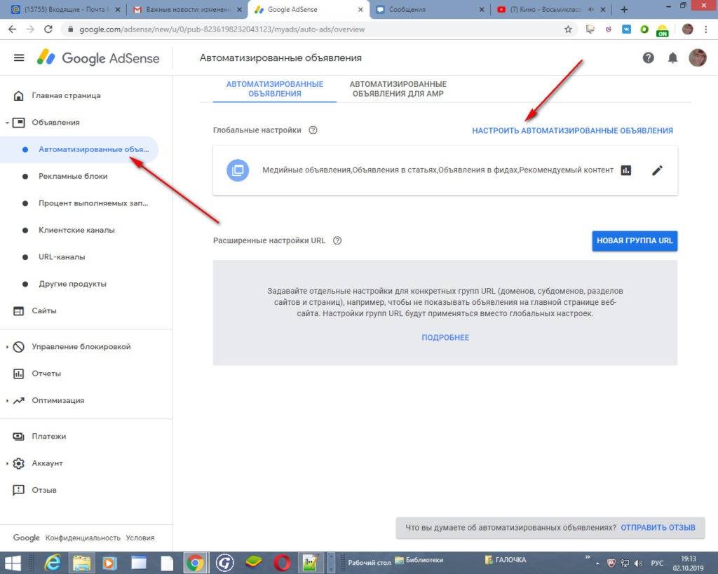 Также можно настроить показ автоматических объявлений для этого следует перейти в левом меню на «Объявления» затем «Автоматизированные объявления».