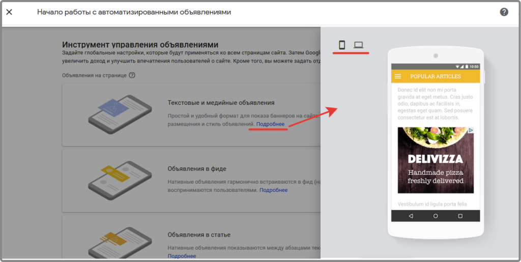Если же издатель выберет показ автоматизированных объявлений, то система автоматически выберет лучшие места размещения рекламы.