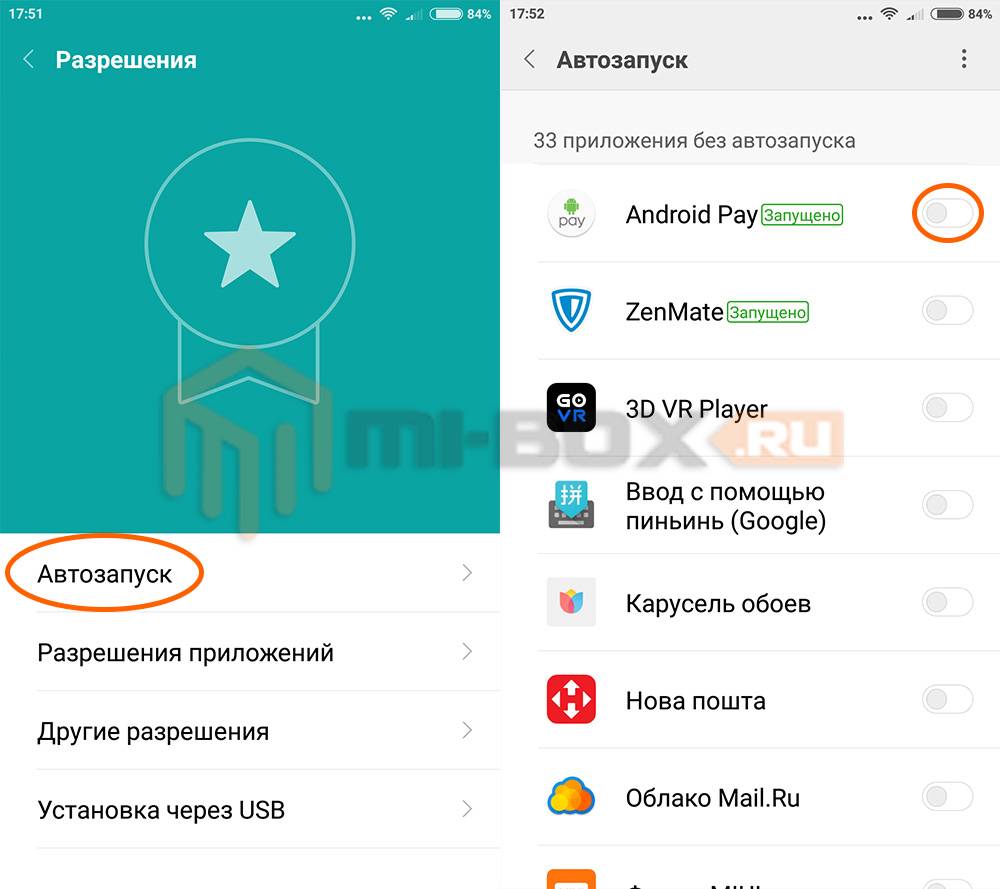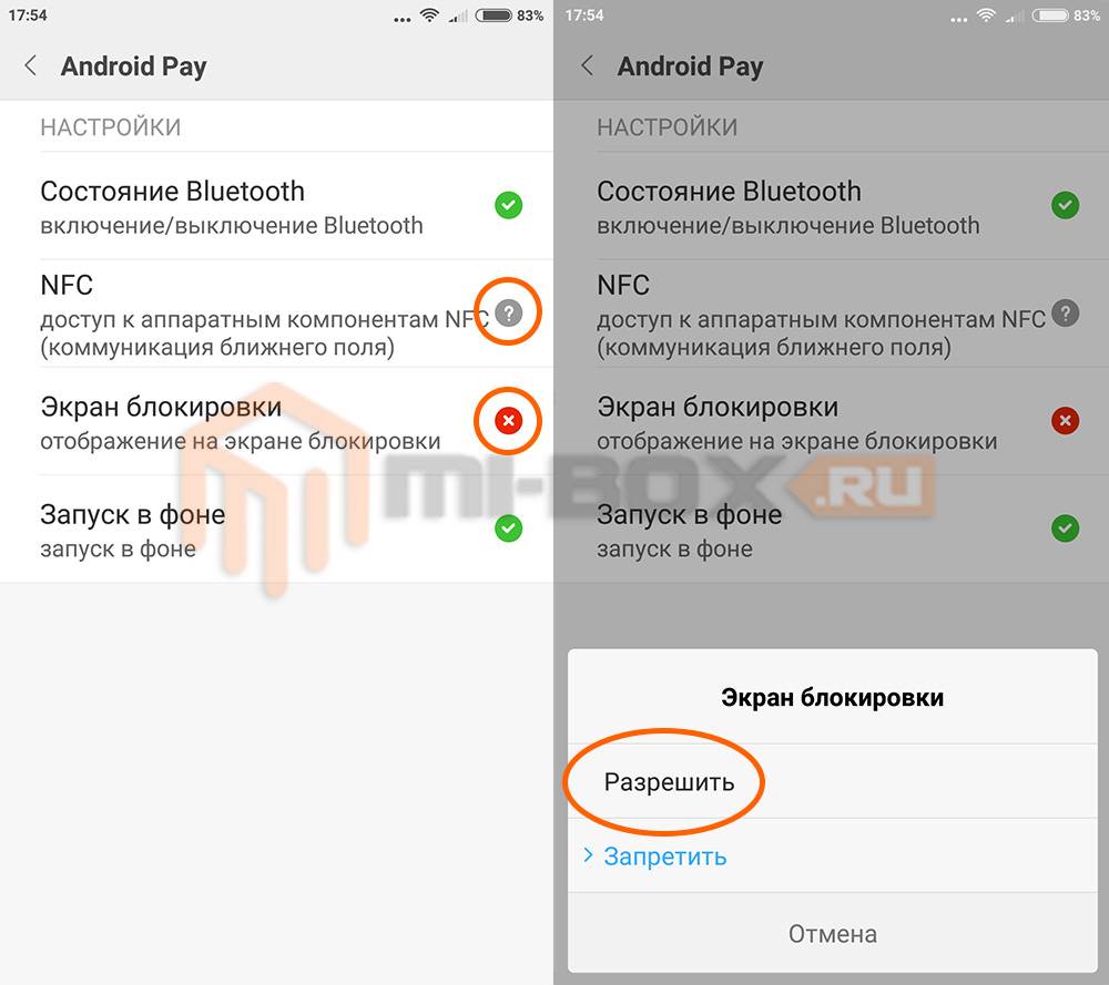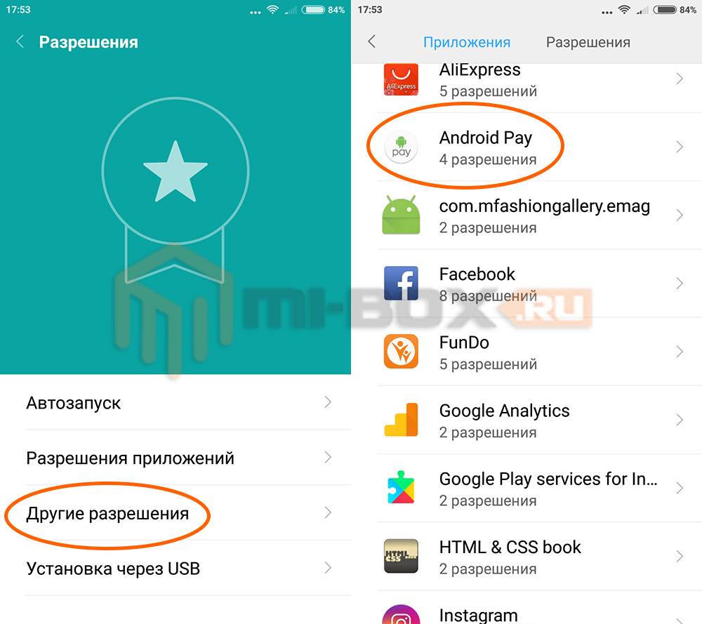 Для этого заходим в настройки смартфона и в разделе “Разрешения” нажимаем на пункт “Автозапуск”. Среди доступных приложений ищем Android Pay и активируем переключатель возле него.