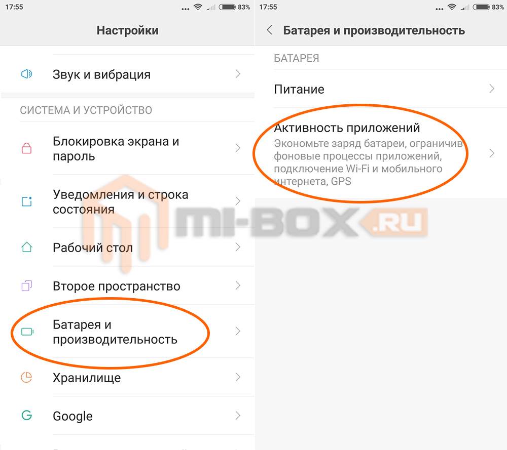 Ищем пункт “Батарея и производительность” и выбираем в нем на “Активность приложений”.