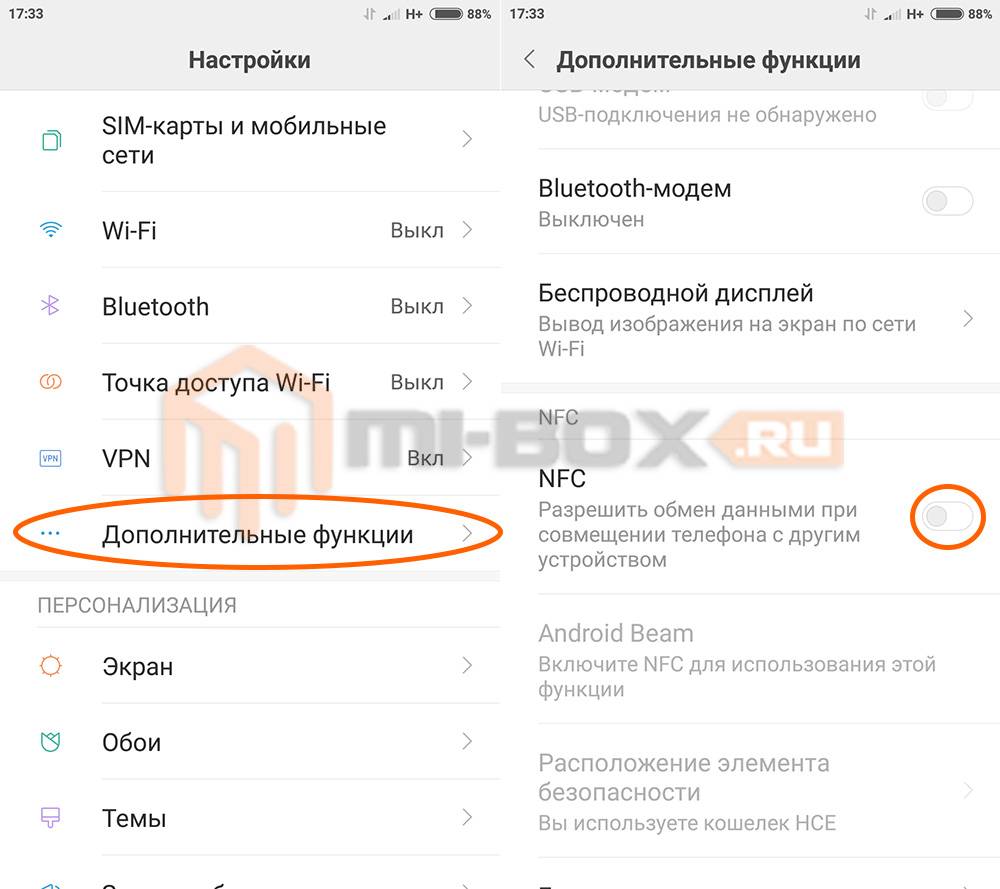 Первым делом заходим в настройки смартфона и в разделе “Дополнительные настройки активируем переключатель возле пункта NFC.