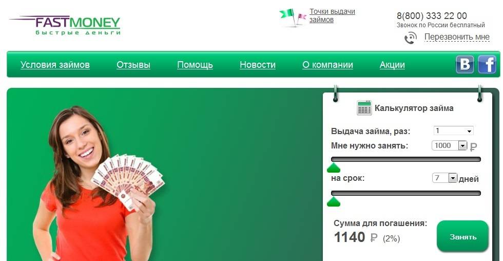 | FastMoney | 18 лет | До 50000 ₽ | От 2% | До года | Возможность многократной пролонгации |