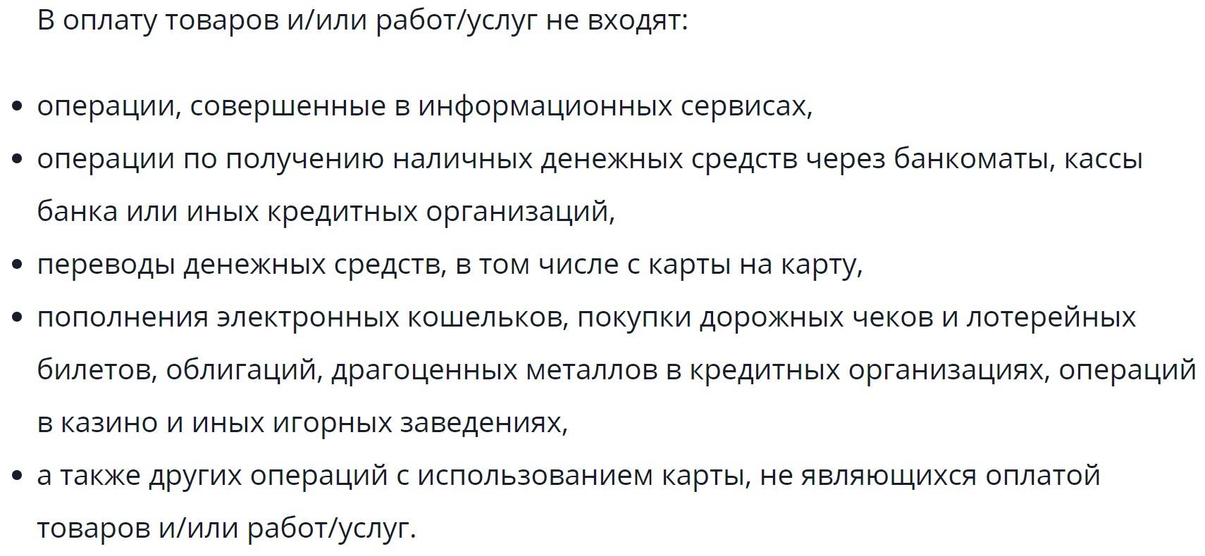 - Сумма трат по карте за месяц более 30 000 рублей, кроме трат в категории «Путешествия» и покупках за границей