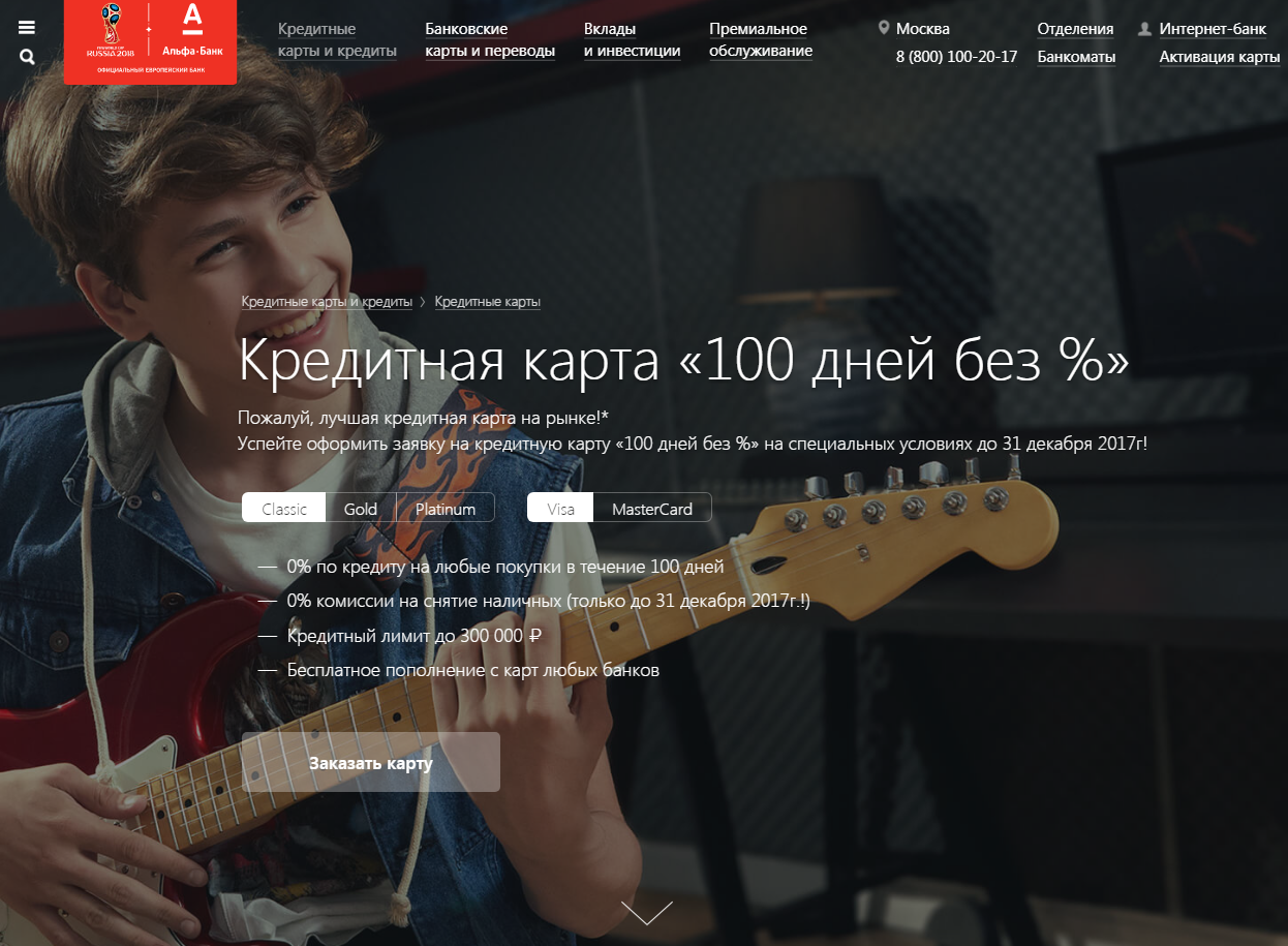 Кредитка Альфа-Банка давно существует на рынке и успешно обходит некоторых конкурентов. Успех заключается в сравнительно длительном льготном периоде (100 дней), размере кредита, предоставляемого на карту, — 500000 руб. или меньше. Плата за обслуживание равна 0 руб. и выше. Снимая до 50000 руб. в месяц, вам не нужно будет платить комиссию. За выпуск кредитной карты также не применяется комиссия.
