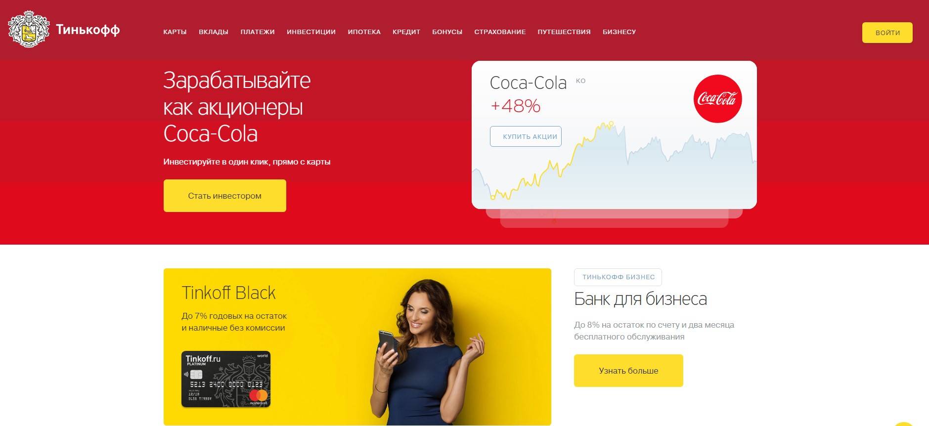 Юридическим лицам Тинькофф предлагает расчетно-кассовый сервис, кредитование и эквайринг, а также: