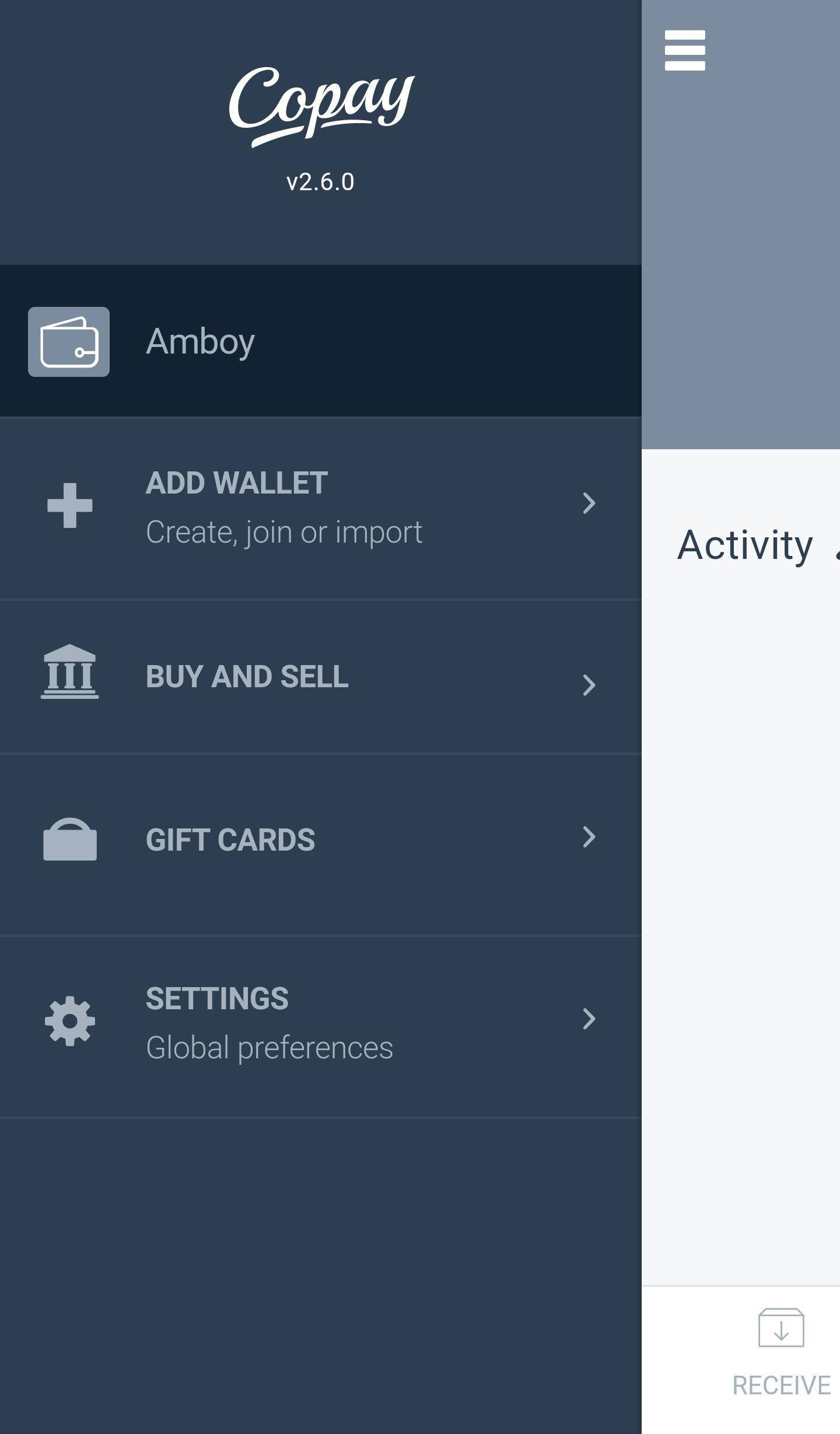 На страницу покупки и продажи можно также перейти из бокового меню навигации Главный минус Copay — это, несомненно, система управления транзакциями. На данный момент все сделки проходят через один-единственный центральный сервер. И хотя ваши средства защищены от воров, транзакции все же уязвимы для DDoS-атак и других проблем, которые могут появиться на сервере. Получается, что, хотя деньги вы и не потеряете, но и распоряжаться ими, пока сервер «лежит», не сможете. Поэтому тем, кто совершает много сделок, вероятно, лучше выбрать другую платформу для торговли — по крайней мере, до тех пор, пока Copay не решит эту проблему.