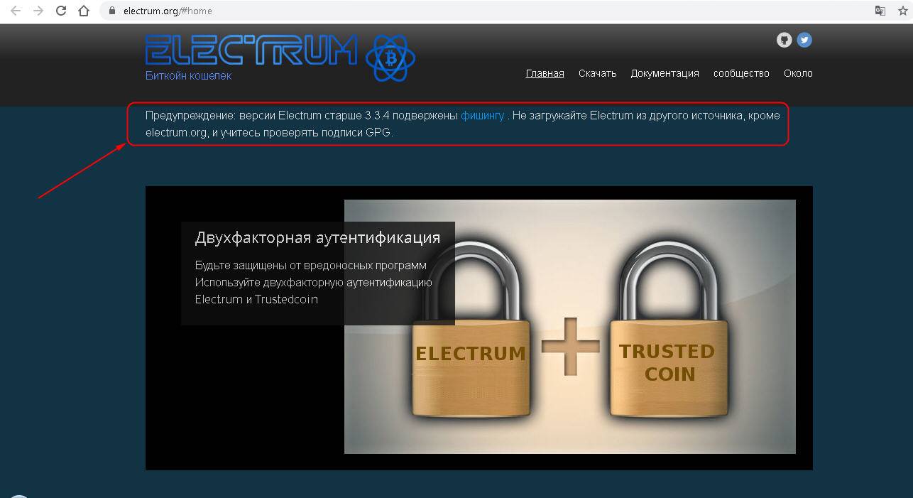 Обратите внимание! Разработчики кошелька ELECTRUM, начиная с версии 3.3.4, советуют скачивать программное обеспечение только с их официального сайта!