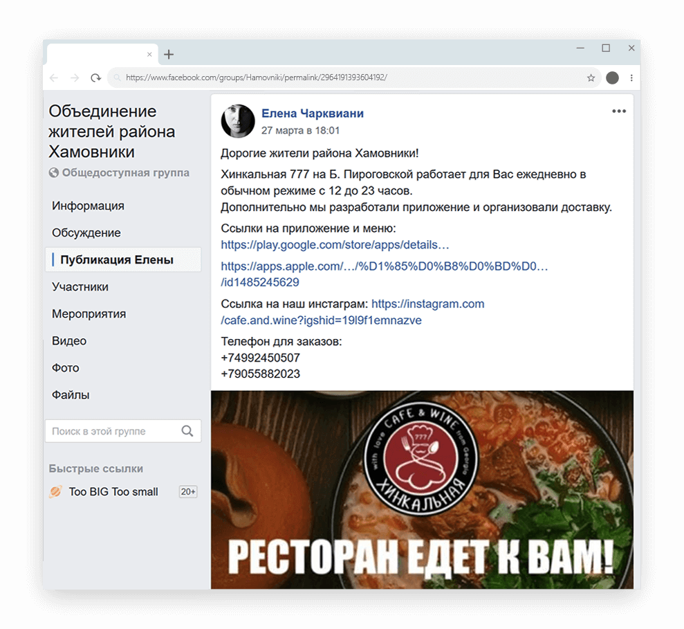 Рассказывайте о себе в районных пабликах и группах в соцсетях. Обычно у каждого района или города в соцсетях есть своя группа, и часто даже не одна. Их можно найти в поиске по ключевым словам или посмотреть у своих подписчиков — наверняка многие в них состоят.