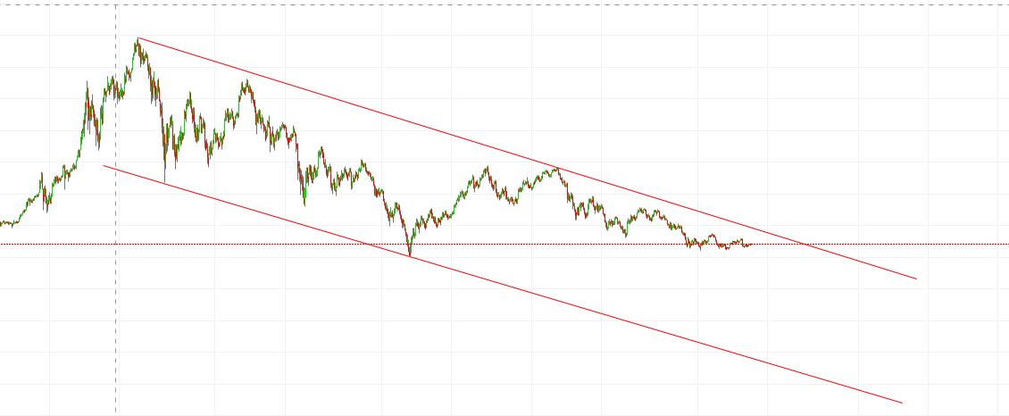 Красным обозначен канал хода цены. От его стенок с большой вероятностью цена будет отталкиваться, предоставляя трейдерам составление сделок с минимумом риска. Однако если мы приблизим скрин, то увидим, что каждая «волна» состоит из большого количества «мини-волн». На них также можно зарабатывать, однако возможности прогнозирования их движения куда менее эффективны. Причина в том, что подобные микроколебания являются реакцией цены на новостной фон, который не может быть спрогнозирован в необходимом объеме.