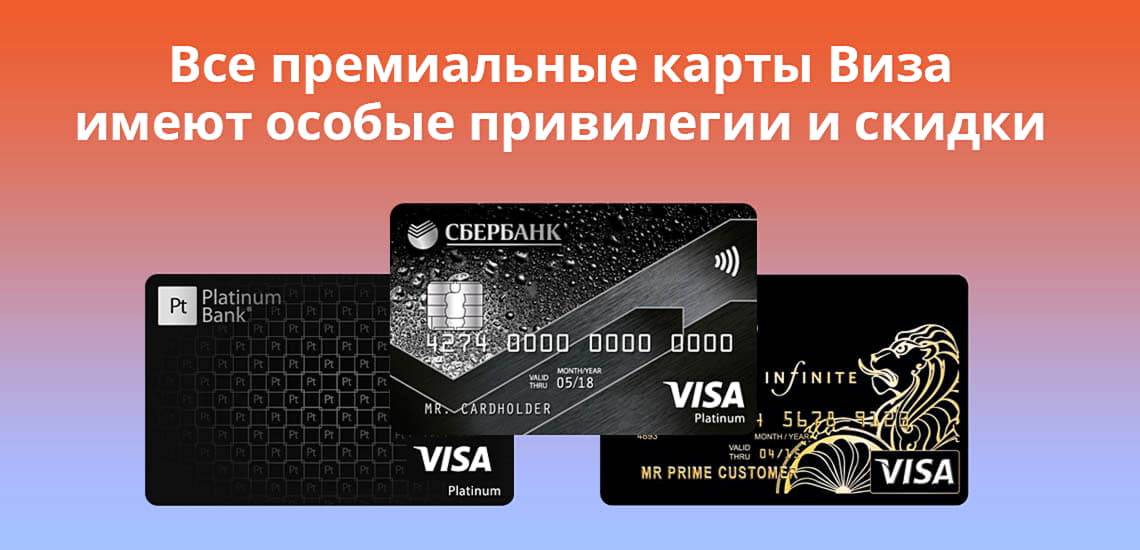 - Premium. Начальный тип премиальных карт Виза. Держатель получает доступ к программе скидок от партнеров Visa по всей России (все премиальные карты Виза имеют доступ к скидкам);