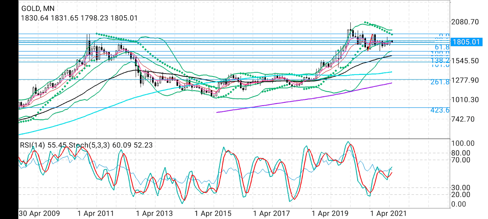 «Отметки в 1829 и 1832 доллара — уровни коррекции Фибоначчи, последний из которых является 38,2-процентым рубежом для движения 2020-2021 годов», — пишет старший стратег рынка драгоценных металлов Джеймс Стэнли в своем блоге на Daily FX.