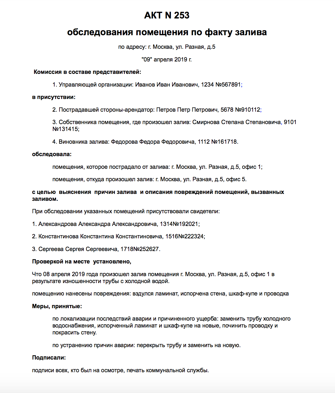 Этот акт подойдет для экспертизы, если зальет помещение. Его проверил наш юрист.