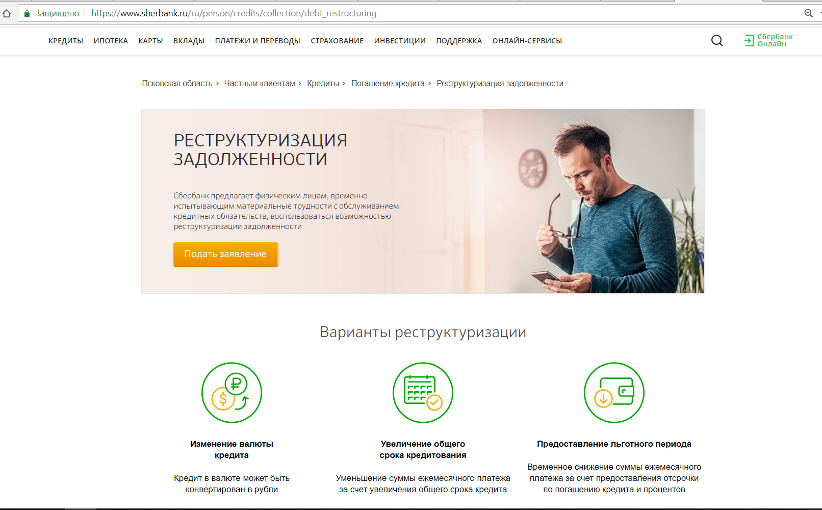 Вам предложат возможные пути решения проблемы, например, пересчет ежемесячного платежа или отсрочку по выплате. Если у вас есть другие кредиты в Сбербанке, их также придется реструктурировать.