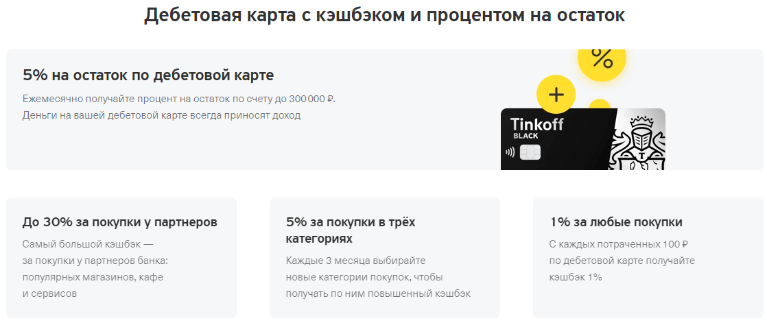 | Тинькофф (Tinkoff Black) | 0 или 99 руб. | от 14 лет | 1-2 рабочих дня | 1% за все, до 15% в трех категориях и до 30% у партнеров | до 6% годовых с подпиской Tinkoff и до 4% без нее | |
