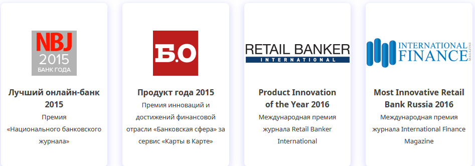 За недолгих (как для банковского бизнеса) два года Тач Банк сумел добиться признания и получить несколько российских и международных наград (в том числе и за карточные продукты).