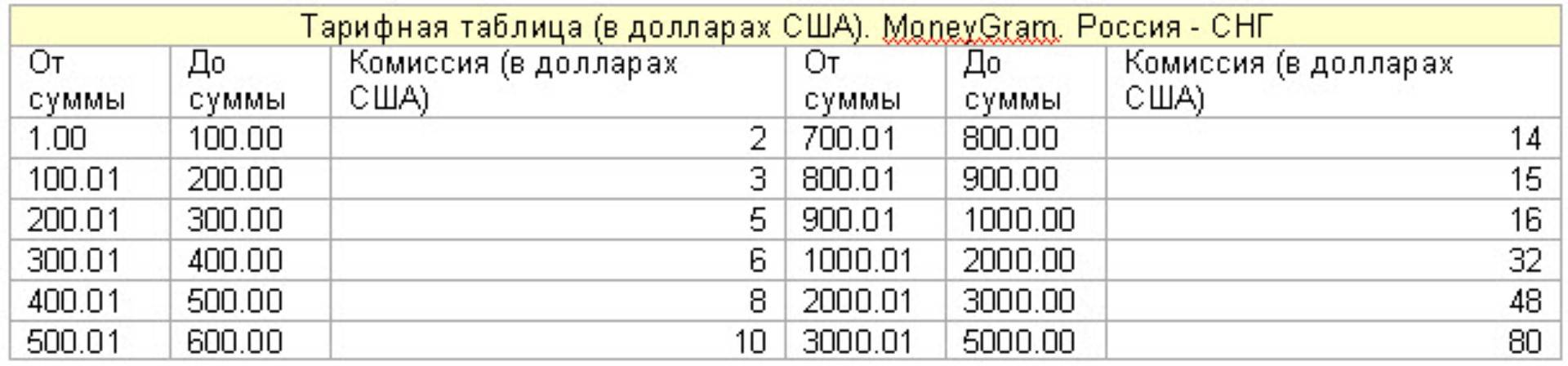 Тарифы на денежные переводы «Маниграмм» напрямую зависят от:
