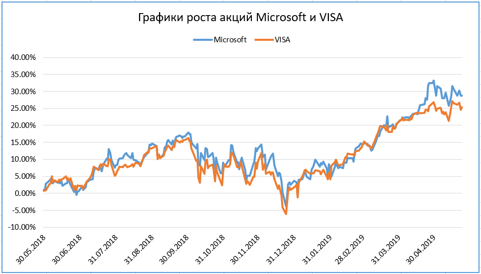 Математика наглядно подверждает, что диверсификация портфеля уменьшает риски инвестиций. Особенно приятно, что уменьшаются просадки, ведь никто не любит терять деньги. Впрочем, наверняка у вас могла возникнуть мысль: «В портфеле мы получили скромную доходность 7%, по сравнению с 25%+ от Microsoft и VISA как-то слабо. Может стоило вложить в эти две компании?».