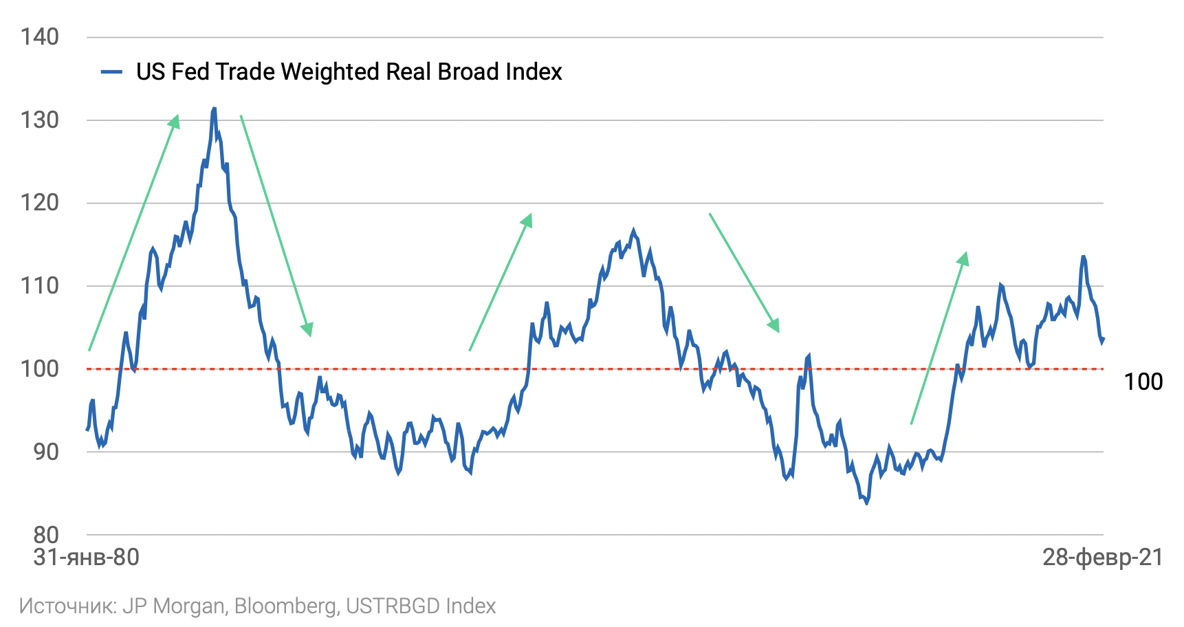 Индекс доллара США и его рыночные циклы, 1980–2020 годы