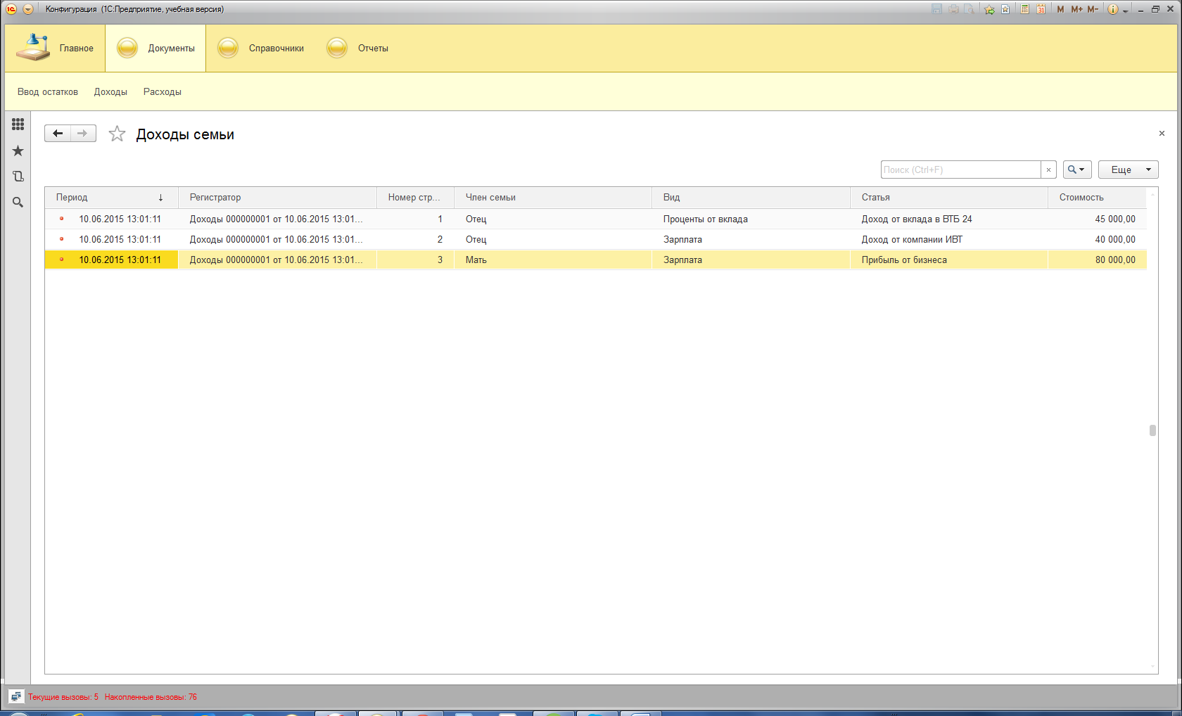 С учетом требований к информационной системе и к базе данных, были спроектированы, разработаны и реализованы следующие документы, регистры и находящиеся в них бизнес-логика для моей учебной конфигурации – базы данных »: