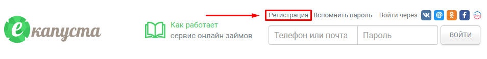 Получить деньги от Екапусты можно после регистрации в личном кабинете. Процедура выдачи займа начинается с первого шага — регистрации в системе (рис. 5). В шапке сайта вы найдёте слово «регистрация», нажимаете на неё и переходим к первому шагу…