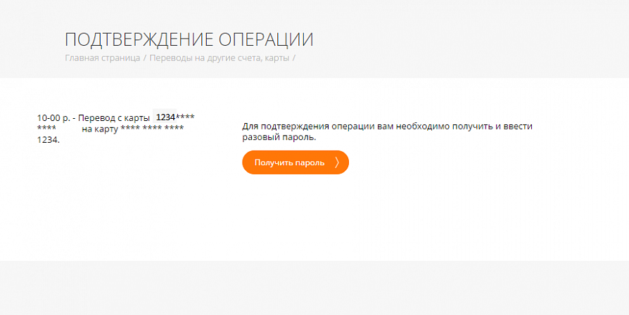 - Подтвердите процесс перечисления, введите код из СМС-сообщения.