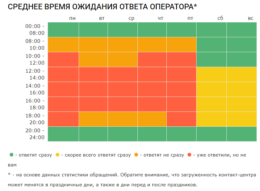 Лучше клиентам звонить утром или вечером, чтобы быстро узнать нужную информацию.