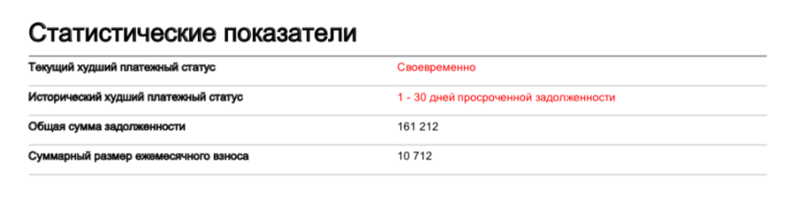 Благодаря отчету заемщик сможет увидеть свою финансовую дисциплину и динамику исполнения обязательств. При наличии просрочек или других негативных факторах станет ясно, почему кредиторы отказывают в ссуде.