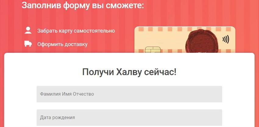 Оформить карту можно на официальном сайте, по адресу: halvacard.ru/order/, оставив заявку, которая быстро будет рассмотрена операторами, или в любом отделении банка.