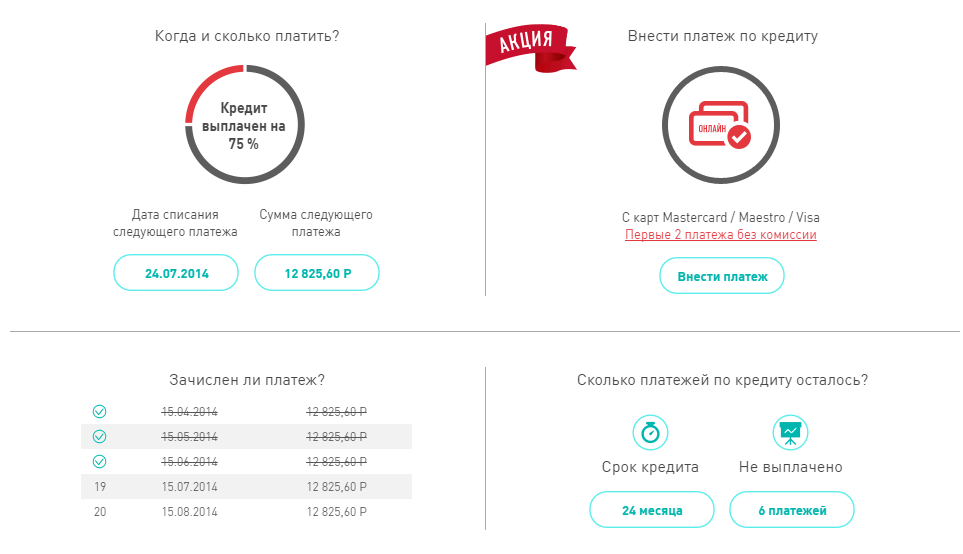 Вы попадаете в свой личный кабинет, где можете всё контролировать, до какого числа нужно сделать платёж, какую сумму нужно внести, график платежей и т.д.