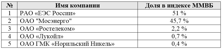Ограничение на вес одного эмитента – 15%, а на вес 5 компаний – 55%.