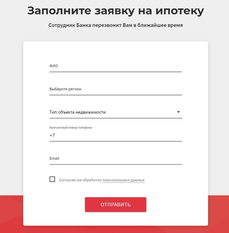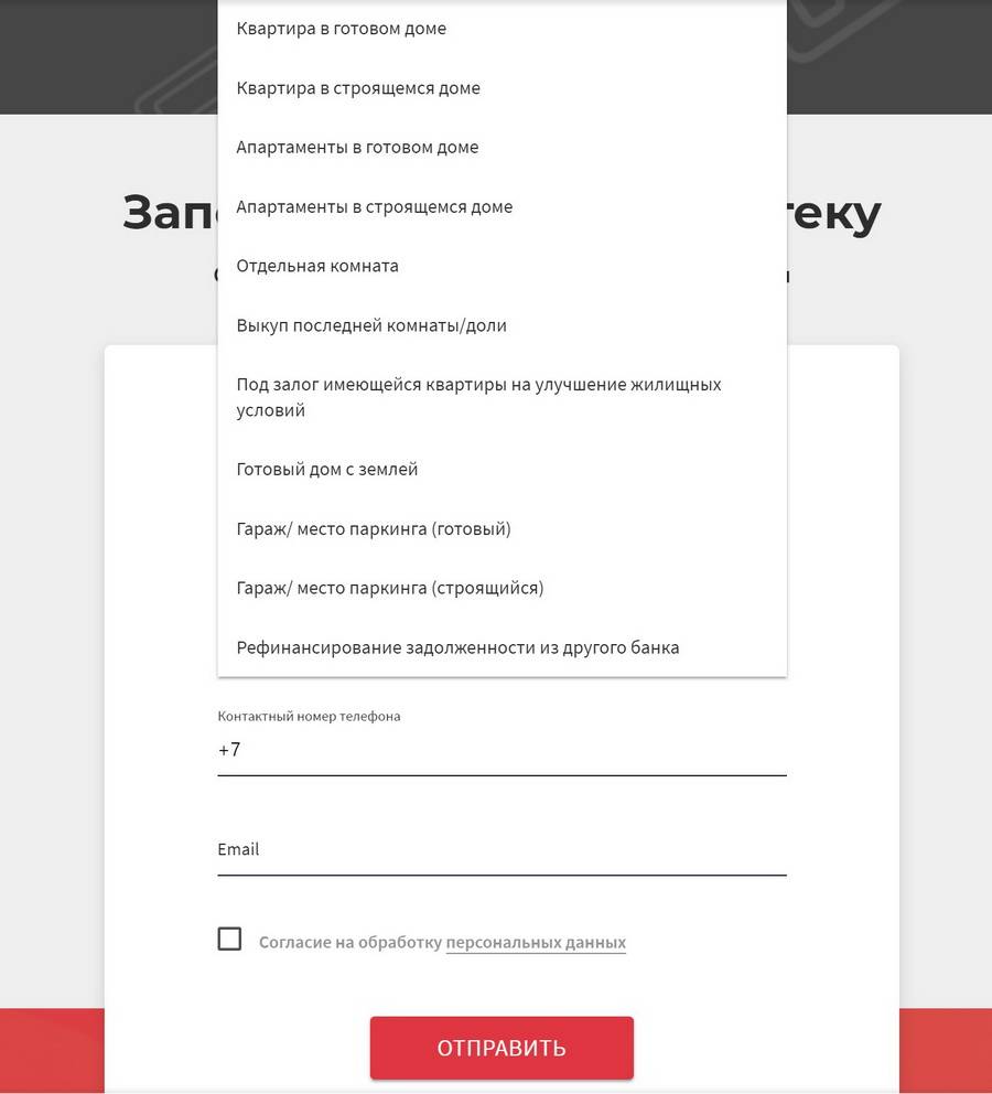При отправке, необходимо заполнить все поля и желательно выбрать интересующую вас ипотечную программу.