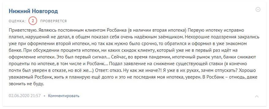 В сети о Росбанке больше негативных отзывов, связанных с отказом банка снижать процентную ставку по ипотеке после заключения договора. Из положительных моментов клиенты отмечают высокий профессионализм отдельных сотрудников филиалов Росбанка.