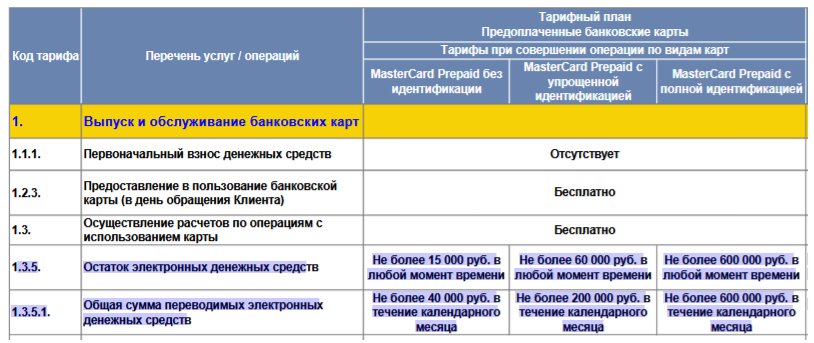 Предоплаченная карта является неименной, при желании держатель может пройти идентификацию. Условия по карте, следующие: