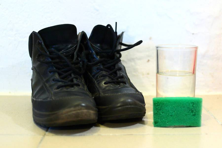 Ботинки, помытые губкой над ведром в той же воде, что и первые