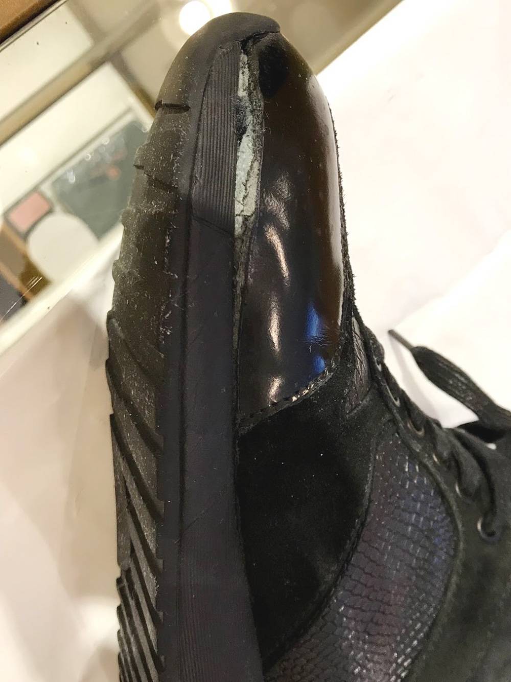 Вот так выглядел левый ботинок через полтора месяца после покупки