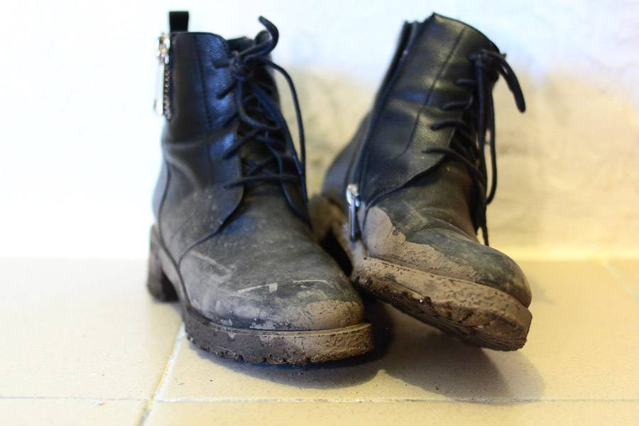 Сначала я мою ботинки сверху, потом — подошвы. На две-три пары мне обычно хватает одного ведра.