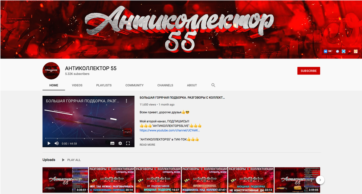 Канал Антиколлектор 55 (Омск) — https://www.youtube.com/channel/UCx697_kXfSue6DLAq-dcwKg — более 5 тыс. подписчиков — более 300 тыс. просмотров видео