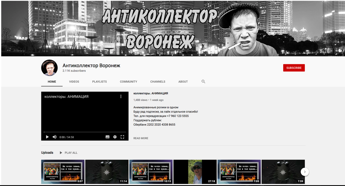 Канал Антиколлектор Воронеж имеет более 2 тыс. подписчиков и более 100 тыс. просмотров видео. Ссылка: https://www.youtube.com/channel/UCiTfjR1xJlExK54S5vsKorQ/featured