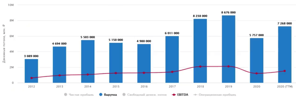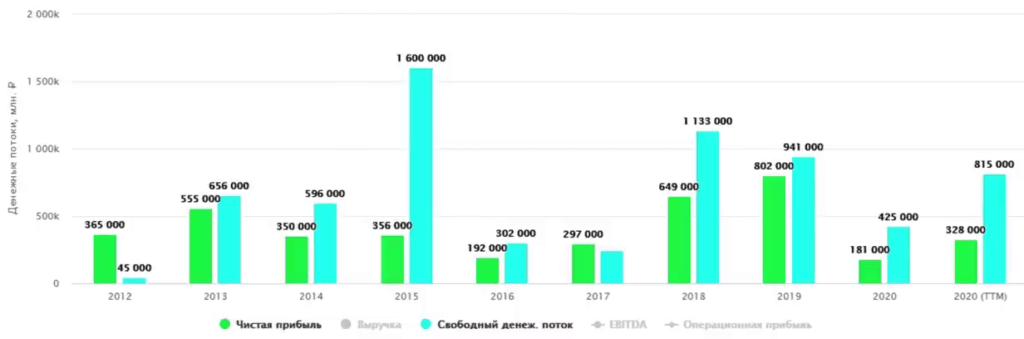 Несмотря на рост выручки, чистая прибыль за 8 лет практически не поменялась. Чистая прибыль — это неоднозначный показатель, который содержит различные неденежные статьи.