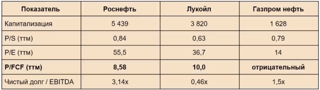 Сравнение мультипликаторов основных нефтегазовых компаний